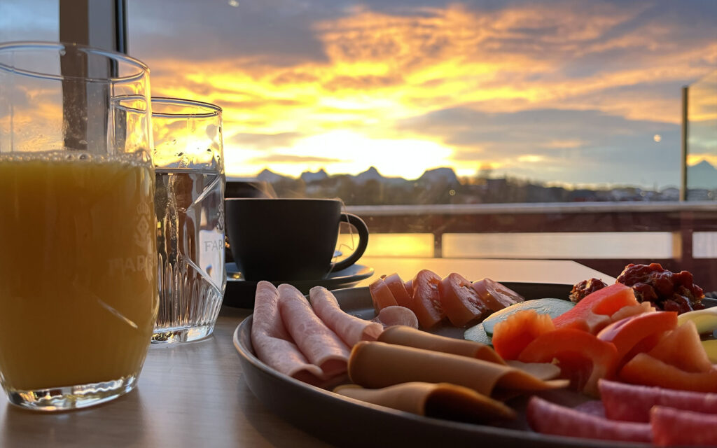 På vår frokostbuffé har vi et bredt utvalg av mat for alle. Fersk frukt og grønnsaker sammen med lokale råvarer og nystekt brød direkte fra vårt eget bakeri – bedre enn dette blir det ikke!